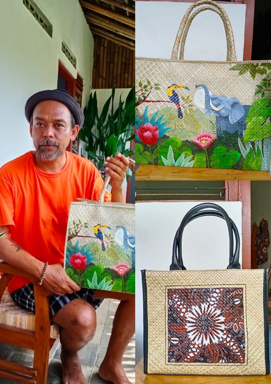 Laki-laki perajin tas anyaman daun pandan itu bernama Dony Permana (34), warga Jaalan Madubronto 369, Patangpuluhan, Yogyakarta. Memulai merintis usaha anyaman pandan sejak tahun 2009 dengan produk seperti tas, tatakan piring, tempat tisu, taplak meja, topi dan kerajinan lainnya dengan harga jya mulai Rp 70.000 hingga jutaan rupiah.