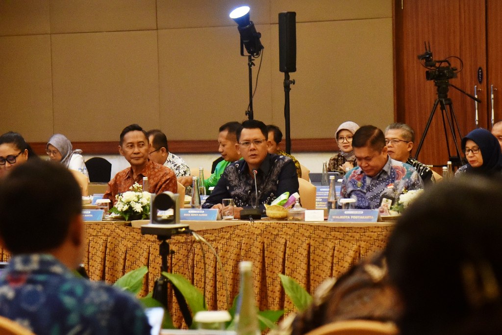 Wabup Sleman, Danang Maharsa (tengah) memaparkan harga dan stok pangan di Sleman, dalam HLM TPID se-DIY. (PM-ist)