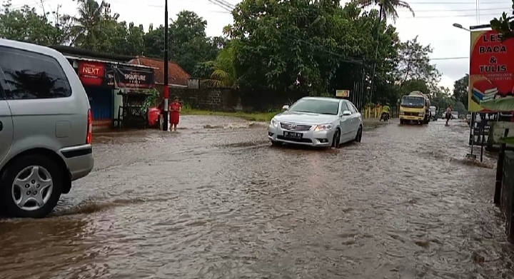 Sungai meluap menggenangi Jl. Palagan Km. 12 (PM/Ernyta)