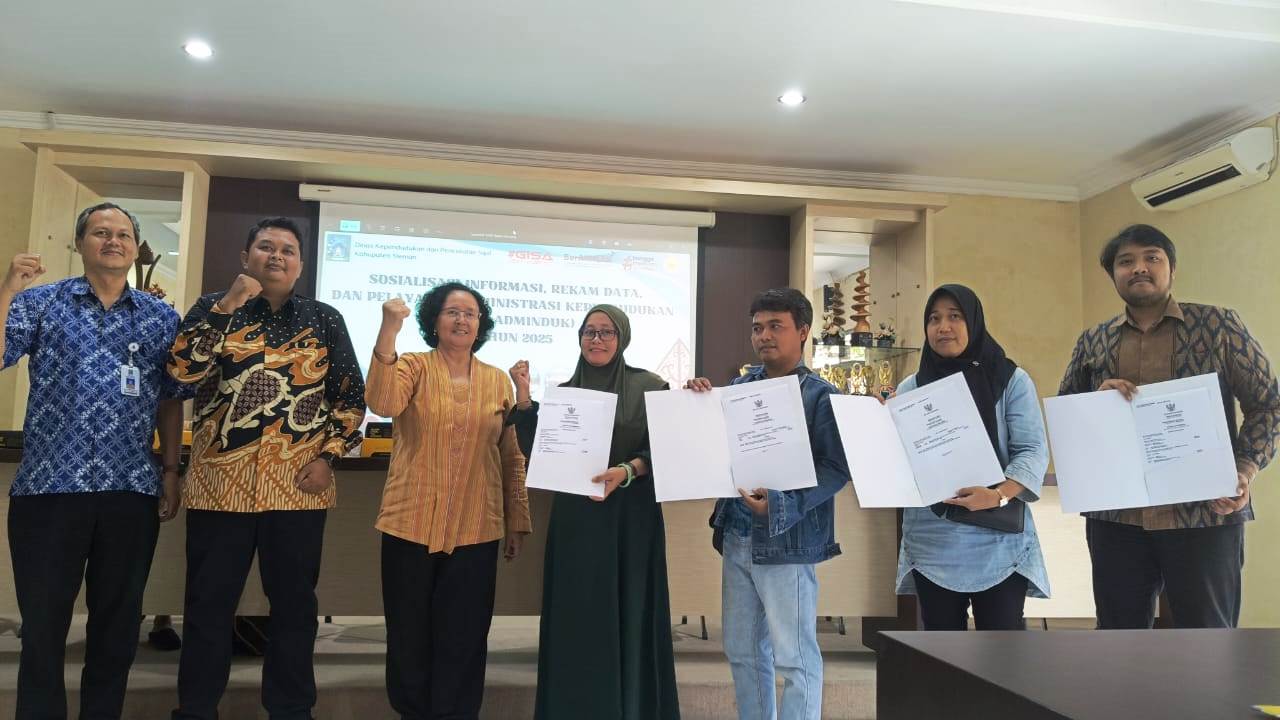 Dalam kegiatan ini, Dinas Dukcapil Sleman juga menyerahkan secara simbolis akta kelahiran dan KIA kepada pemohon yang mengurus dokumen dalam program Sisir Adminduk.