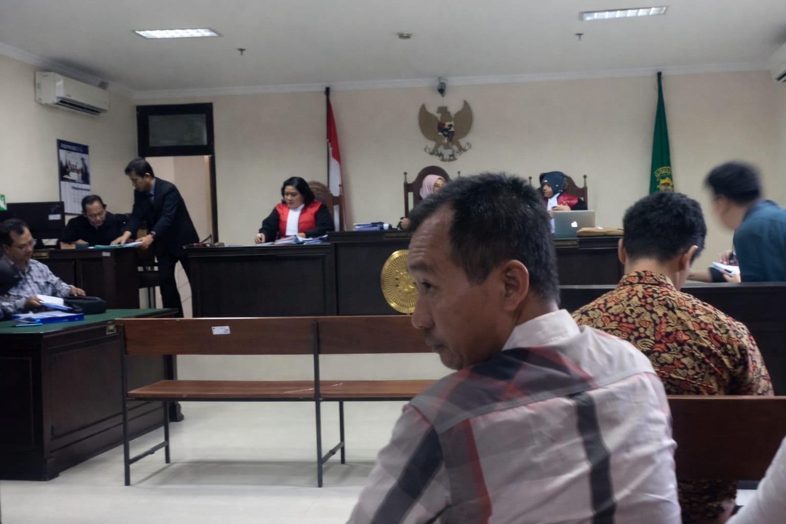 Suasana sidang pembuktian lanjutan sengketa proyek pembangunan gedung pendidikan senilai Rp30 miliar di Pengadilan Negeri Sleman, Rabu (4/2/2026). Majelis hakim menunda persidangan hingga 11 Februari 2026. (PM-Muh Sugiono)
