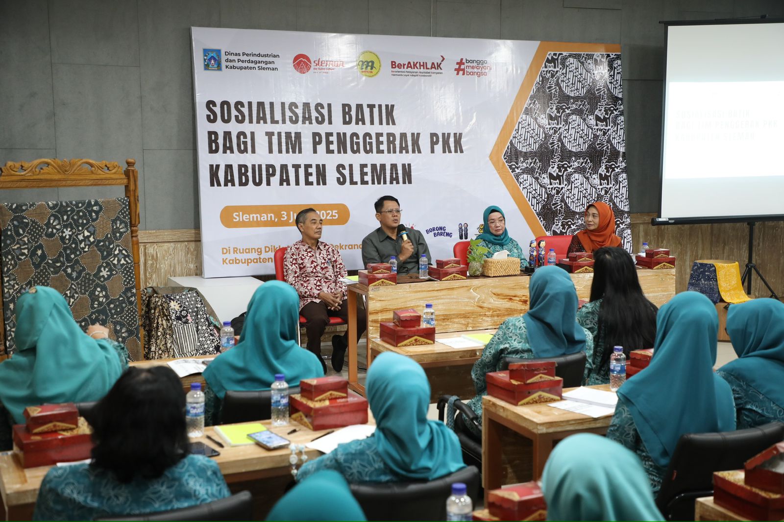 Hal tersebut disampaikan saat menghadiri kegiatan sosialisasi batik yang digelar Dinas Perindustrian dan Perdagangan (Disperindag) Sleman di Gedung Dekranasda Sleman, Selasa (3/5).